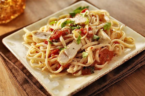 - إرفعي معكرونة الدجاج الحارة من على النار، ثم ضعي عليها أوراق البقدونس المفرومة وتقدم.