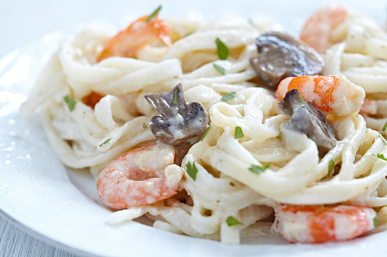 من المطبخ الايطالي اخترنا لكم قراء موقع شايف الاعزاء، طريقة تحضير مكرونة بالروبيان والمشروم والكريمة. واليكم في ما يلي المقادير وطريق التحضير وصحتين وعافية.