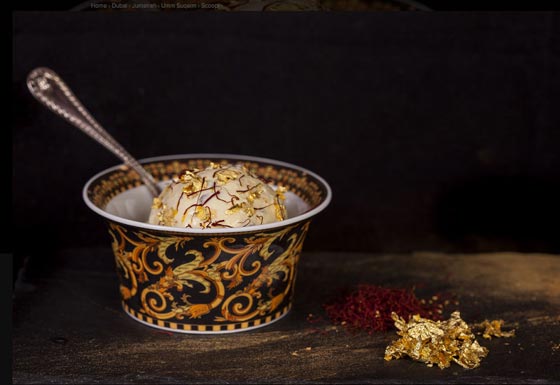 بعد أن كان الذهب يعرف ببريقه، أصبح الآن بمقدور الأثرياء التعرف على مذاقه، ففي إمارة دبي يقدم أحد المقاهي نوعا فاخراً جدا من مثلجات "الآيس كريم" المرصع بالذهب عيار 23 المعالج والصالح للأكل، ويبلغ سعر القطعة الواحدة منه 2999 درهماً (800 دولار أميركي)، حسب ما جاء في صحيفة "ديلي ميل".