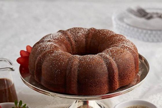 - تخبز الصينية في الفرن من 30- 35 دقيقة ثم ضعي كيك ليبرد لمدة 10 دقائق قبل إزالته من الصينية .