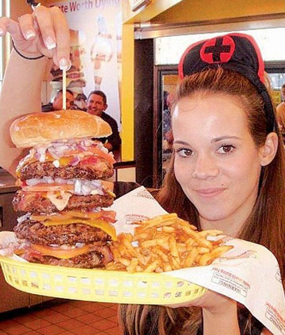 Heart Attack Grill أو مشاوي النوبة القلبية هو مطعم أميركي يقلب كل موازين الطعام التي تحاول أن تتميز بها أغلب المطاعم، فهذا المطعم الأميركي الجميل له أكثر من فرع في دالاس وفي لاس فيغاس، ومبدأ هذا المطعم هو تقديم وجبات دسمة مكونة من الهمبورغر ومشتقاتها بعكس المطاعم الأخرى، التي تعتمد على تقليل السعرات الحرارية لاجتذاب الزبائن، ويحارب هذا المطعم الساخر بطبيعته الخوف والقلق الزائد من النوبات القلبية الناتجة عن السمنة، وتعتبر الديكورات الخاصة به أكبر دليل على ذلك، فهذه الديكورات ما هي إلا ديكورات غرفة عمليات، وتلبس النادلات فيه زي ممرضات يقدمن لك الطعام الدسم وأنت في غرفة العمليات كنوع من التحدي، بل إنّ السخرية المتناهية تكمن في تقديم هذا المطعم لوجبات مجانية لمن يفوق وزنهم الـ175كجم.