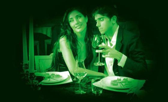 هو في الحقيقة ليس مطعماً واحداً بل سلسلة من المطاعم في باريس وبرشلونة ولندن، وهي سلسلة مطاعم Dans Le Noir، وفي هذه السلسلة الغريبة من المطاعم فالآية مقلوبة، حيث يغرق المطعم في ظلام دامس؛ لكي يشعر الزبون بأنه أعمى، ولكي لا يعتمد على عينيه في السير أو اختيار الأطباق أو الجلوس، ولكن المفاجأة أنّ من يقوم بخدمته هم العاملون في المطعم وكلهم من العميان، وبطبيعة الحال فالمطعم مجهز سواءً من حيث توزيع الطاولات والمقاعد، أو حتى قوائم اختيار الطعام، أو الأطباق ونوعياتها كلها مجهزة لاستخدام العميان.