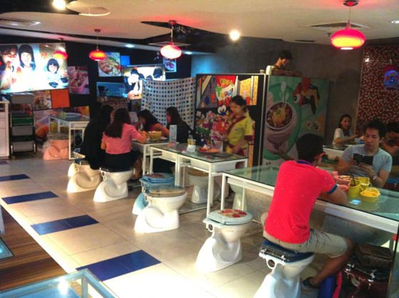 مطعم المرحاض أو MODERN TOILET RESTAURANT في تايوان صاحب فكرة ربما تبدو للوهلة الأولى والثانية والعاشرة مثيرة للاشمئزاز، وهي كذلك فعلاً، فهذا المطعم يقدم وجباته الساخنة واللذيذة في مراحيض صغيرة أعدت لهذا الغرض، فكرة المطعم غريبة جداً، وموافقة السلطات المعنية على هكذا فكرة تعتبر غريبةً جداً أيضاً، ولكن الأغرب من هذا كله الإقبال الكبير جداً على هذا المطعم، حتى إنك أحياناً تضطر للانتظار لساعات؛ لتتمكن من الجلوس والحصول على مرحاضك، ولكن يبدو من هذا الإقبال أنّ العقل البشري ربما يميل لكسر الروتين وممارسة غير العادي حتى لو كان هذا الشيء مثيراً للقرف أحياناً.