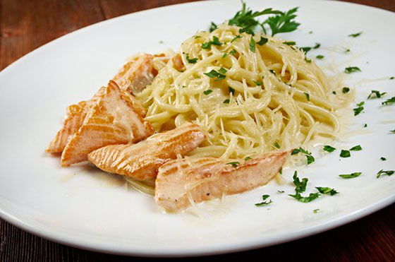 السلمون من أكثر المأكولات البحرية التي ينصح بها خبراء التغذية لغناه بالدهون المفيدة وغير المشبعة، أعددنا لك في مطبخ "شايف" وصفة السلمون مع المعكرونة.