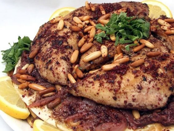 9. أضيفي الدجاج المشوي وقدمي الطبق ساخنا مع اللبن والسلطة الخاصة ( انظري الفكرة لوصفة السلطة).