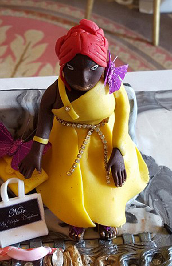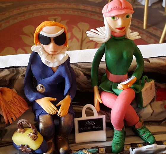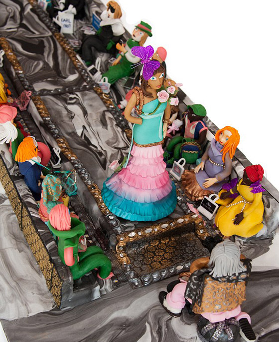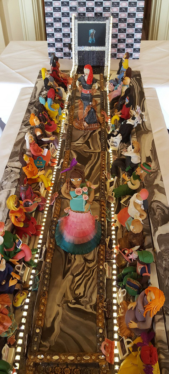 وتتخذ اغلى كعكة في العالم شكل عرض أزياء بممشى العارضات وصفوف المشاهدين. وتحتوي ملابس بعض العارضات على قطع من الألماس الحقيقي. وفي الصف الأول من المشاهدين تجلس النساء المرتديات لتصميمات شهيرة في الملابس والحقائب والأحذية.