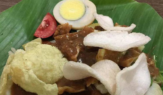 طبق "غادو غادو" الإندونيسي، وهو طبق محلي يتكون بشكل أساسي من الخضار والبيض والأرز ورقائق الجمبري