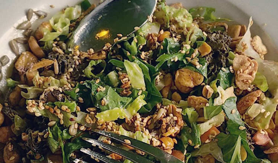 طبق "سلطة تي ليف" في ميانمار وهو طبق محلي يتكون بشكل أساسي من أوراق الشاي المخللة والطماطم والملفوف والفاصوليا والبازيلاء والمكسرات والثوم