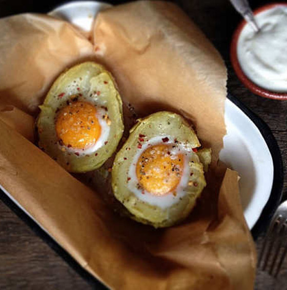 وصفات طعام بولندية: يمكن الاستمتاع بوجبة البطاطا المشوية مع البيض. ولتحضيرها، اقطع حبة البطاطا إلى نصفين، وضعها في الفرن. أخرجها قبل انتهاء فترة طبخهما بشكل كامل بخمس دقائق. باستخدام الملعقة، أزل بعض البطاطس في الوسط، وفي قلب التجوف افقس بيضة، وأعدها إلى الفرن حتى تستوي البيضة حسب الرغبة. زين الطبق بالملح البحري والفلفل الأسود.