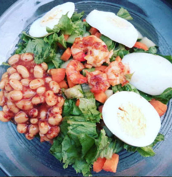 يمكن أيضاً إضافة بيضة مسلوقة إلى سلطة من الخس والجرجير وإضافة بعض الفاصولياء المسلوقة