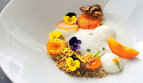 @Royalbrat: يظهر في حساب نيك فيبيتشاك بيتايانونت صور الأطباق بحرية، والخضار، والألبان. ويحتوي هذا الطبق على الملبن والمشمش الطازج وغرانولا وبهارات ماسلا الكاري وموس اللبن اليوناني الرائب، بالإضافة إلى الزعتر وزهر البنفسج.