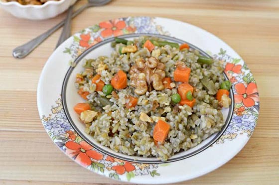 5 - تُقدم الفريكة ساخنة، وتجمل بالجوز المحمص أو حسب الرغبة.