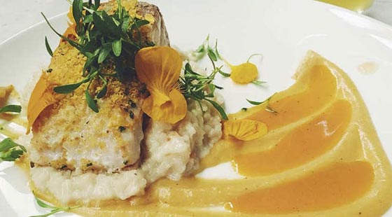 طبق "ريزوتو أرز جوز الهند": ويتكون طبق الطعام من شرائح السمك وأرز جوز الهند وهريس