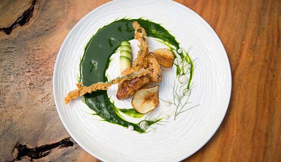 ويقدم فرع "إل سيلو" في ميدلين طبق الدجاج المتبل ببذور الخردل والفانيلا والجعة، ومسحوق السبانخ،