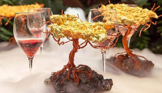 يقدم مطعم "إل سيلو" أطباقاً مبتكرة من الطعام، مثل هذا الطبق المستوحى من أشجار الأمازون، والمصنوع من خبز الكاسافا وشوكولاته الكمأة المغطاة بمسحوق الذهب والمغطاة بعصير الأناناس وجوز الهند.