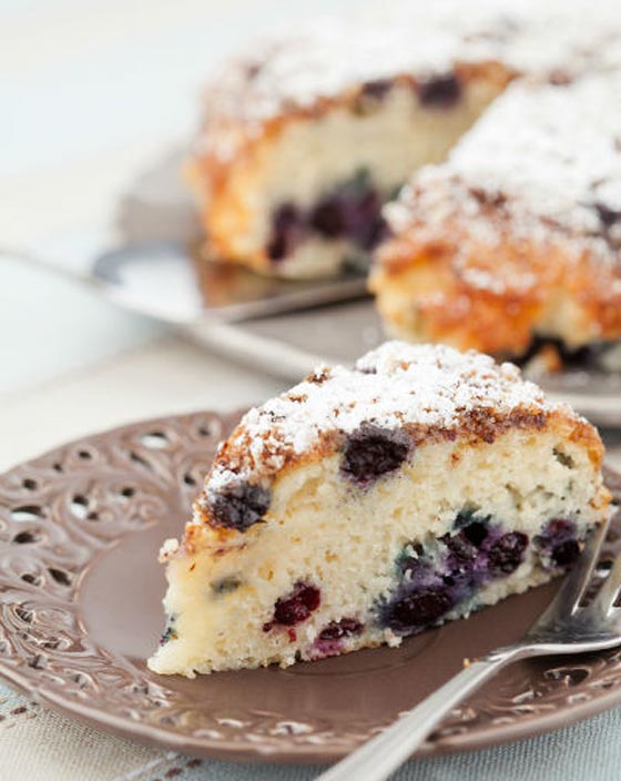 - ادهني صينية مناسبة بالزبدة وبطنيها بالدقيق ثم ضعي نصف الخليط ثم نصف التوت.
