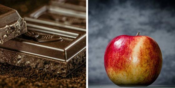 لهذه التركيبة قدرة على تحسين صحة القلب والأوعية الدموية.. التفاح الأحمر غني بمركبات الفلافونويد التي تكافح الالتهابات، و الشوكولاته الداكنة غنية بمضادات الأكسدة التي تمنع تصلب الشرايين، وعندما يقترنان معاً يمنعان تجلط الدم.