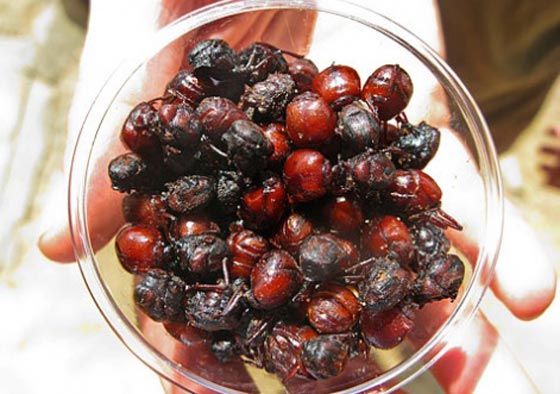 - في كولومبيا يأكلون نوعا من النمل يحمل اسم هورميغاس كولوناس Hormigas Culonas وهو من اكلاتهم المفضلة وعادة ما يقدم كطعام خفيف بعد ان يتم نزع الرأس والاطراف والاجنحة ليبدو مثل البندق عند تقديمه مع الملح ومطيبات اخرى. وهذا النوع من الطعام يقدم في فترة معينة واحدة من السنة تحمل اسم الاسبوع المقدس ولذا فاسعاره مرتفعة في العادة. وتسمى هذه الاكلة "كافيار سانتاندر" ايضا.