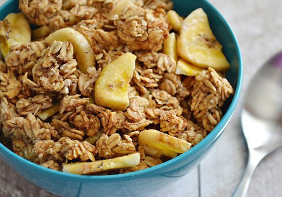 الفواكة بالمكسرات: مزيج من قطع الفواكة " تفاح، كمثرى، موز" وخلطها مع كمية مناسبة من الشوفان الأسمر ويمكن إضافة حفنة من المكسرات مثل " اللوز، عين الجمل" يحلى الخليط بالعسل الأبيض ويضاف إلية كوب من الحليب.