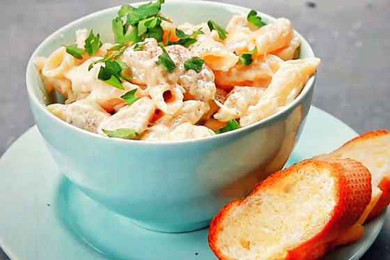 وصفة معكرونة بالكريمة والدجاج الرائعة من المطبخ الايطالي من الوصفات الشهية والسهلة بالخطوات الواضحة، نقدمها لك اليوم من مطبخ شايف.. حضريها بمطبخك في إناء واحد في عشرين دقيقة فقط. ولا تنسي مشاركتنا بالتعليقات! صحتين وعافية