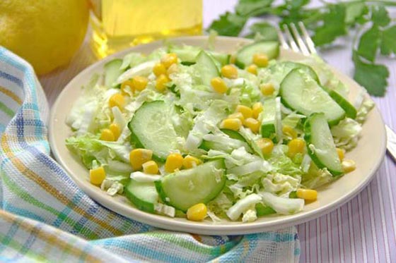 1. يبشر الجزر ويخلط مع الملفوف المقطع شرائح ومع حبات الذرة.
