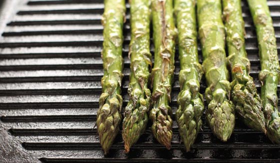 طبخ الخضار باستخدام آلة شواء على النار يضفي إليها طعماً لذيذاً ويحافظ على العناصر الغذائية. ويفضل استخدام طريقة الطبخ هذه لنبات الهليون والفاصوليا الخضراء والكرفس والبروكولي والبصل.
