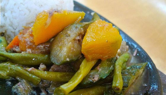 بينكابيت: يحضر طبق البينكابيت من البامية والباذنجان والقرع المر والحلو والطماطم والباغونغ الذي هو معجون سمك أو قريدس.