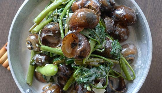 كوهول سا غاتا: يطبخ الحلزون الطازج في حليب جوز الهند ثم يقدم مع الخضار الورقية. وتستخدم شوكة صغيرة أو عودة لإخراج لحم الحلزون من القوقعة.