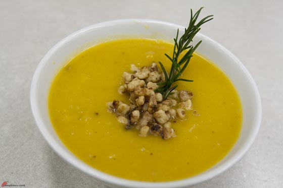 2. حساء الإسكواش والجوز : شوربة الاسكواش بالجوز لذيذة للغاية عند تقديمها علي وجبة الإفطار. غالباً ما يفضل معظم الأفراد حساء الخضروات ولكن ماذا عند تجربة جديدة معبأة بالعناصر الغذائية مثل فيتامين أوالألياف.