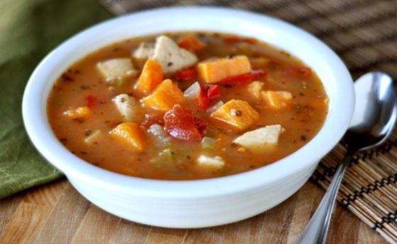 7. حساء الطماطم: شوربة الطماطم لذيذة يحبها الكبار والصغار. وفي المطاعم يتم تحضيرها بإضافة الكثير من الزبد والكريما لاكسابها الطعم الدسم، لكن هذا يجعلها مرتفعة السعرات الحرارية. اليك وصفة لتحضيرها في البيت مع اختصار الزيوت والدهنيات بقدر الإمكان..