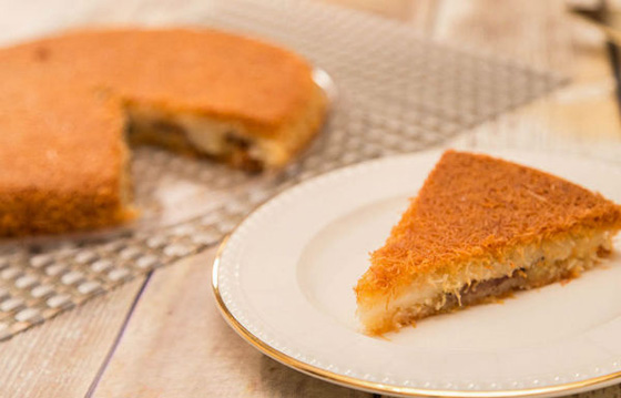 7- اتركي الكنافة تبرد قليلاً قبل التقطيع.
