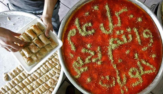 لا شك في أن الحلويات بأنواعها تنتشر في العيد ويقبل على شرائها غالبية المحتفلين، من كعك العيد إلى أنواع البقلاوة والكنافة، ولكن احرصوا على التفكير بكميات الطعام قبل تناولها، إذ من الممكن أن يسبب تناول الكثير من السكر بعد فترة صيام طويلة شعوراً بالغثيان وارتفاع بنسبة السكر في الدم.
