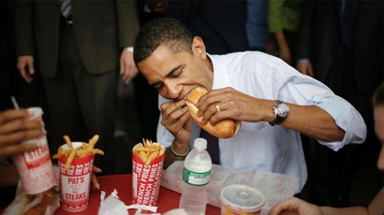 خلال حملته الرئاسية في العام 2008، قام الرئيس الأمريكي باراك أوباما بتناول شطيرة "تشيزستيك" وطبق