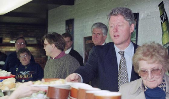 تناول الرئيس الأمريكي الأسبق بيل كلينتون وجبة غذائه في جامعة سوكولوسكي في مدينة كليفلان