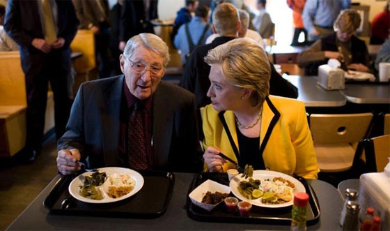 المرشحة الديمقراطية الحالية هيلاري كلينتون تتناول مع ممثل جنوب كارولينا جيمي بيلز وجبة من الطعام في