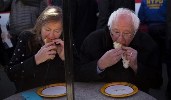 قام المرشح الديمقراطي بيرني ساندرز وزوجته جين بتناول شطائر "هوت دوغ" في مطعم "ناثانز فاموس"