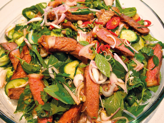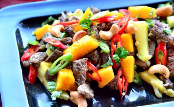 3. يسخن ما تبقى من الزيت النباتي في نفس القدر وتضاف شرائح لحم الفيليه مع الفلفل الأسود وتقلب جيداً بالزيت ثم يضاف إليها الماء الساخن ويغطى القدر ويترك على النار لحين استواء اللحمة. ثم تضاف الخضار إلى القدر وتقلب معا جيداً.