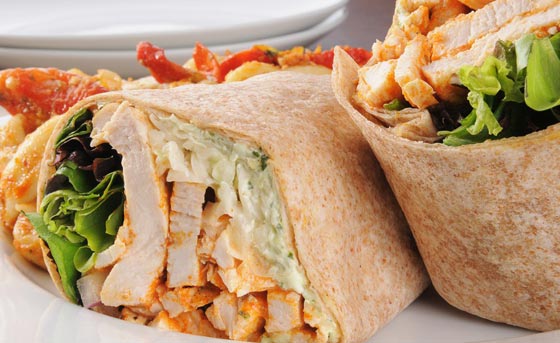 3. نضيف الدجاج المشوي والخس ونلف الخبز على شكل أسطوانة لتأخذ شكل اللفائف وتقدم إلى جانب طبق من السلطة أو الشوربة.
