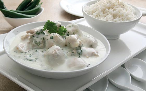 7. نقوم بإسقاط قطع العجينة المحشوة باللحمة في اللبن وندعها تغلي حتى الاستواء وتسكب في طبق عميق وتقدم إلى جانب الأرز الأبيض.