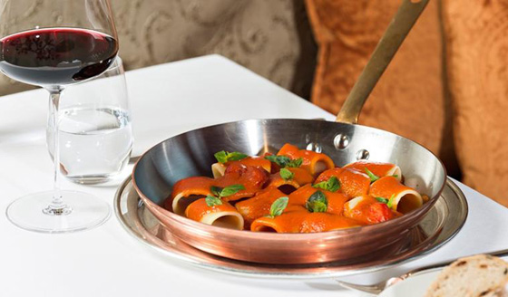 مطعم "Da Vittiorio" - فندق كارلتون: يطل المطعم على بحيرة سانت مورتيز والجبال من ورائها، ويقدم طبق معكرونة بوصفة خاصة للطماطم