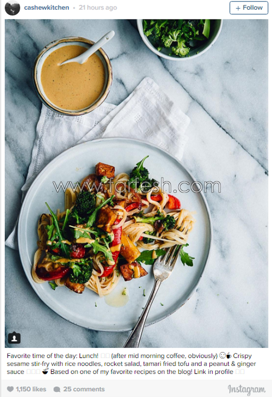 هناك الكثير من الكتب والوصفات النباتية على رفوف المتاجر. ولكن، كيف تجعل أطباقك لذيذة وإن كانت تستند فقط إلى استهلاك الخضراوات؟ هل من الممكن حقاً جعل كعكة جيدة دون إضافة الحليب والبيض أو الزبدة؟ إذا لم تكن قد استسلمت لهذا النظام الغذائي، هنا 13 حساب إنستغرام تعرض وصفات ملونة لذيذة لكنها 100٪ مأكولات نباتية، قدمها موقع "Elle" الفرنسي.