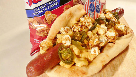 3. هذه الشطيرة تحوي ثلاث وجبات تنتناولها مفردة في العادة، إذ تتكون من معكرونة بالجبنة مع نقانق وفلفل أخضر مقلي مع الفشار والمكسرات المغطاة بالكراميل، قطعة من خبز "نان" تضم المكونات، عوضاً عن الخبز الذي اعتدناه في الوجبات السريعة، قام الطباخ جورج دراكوليتش الذي يعمل لصالح شركة "Armark" بابتكار هذه الشطيرة حصرياً لصالح حديقة "PNC" في بتسبيرغ الأمريكية.