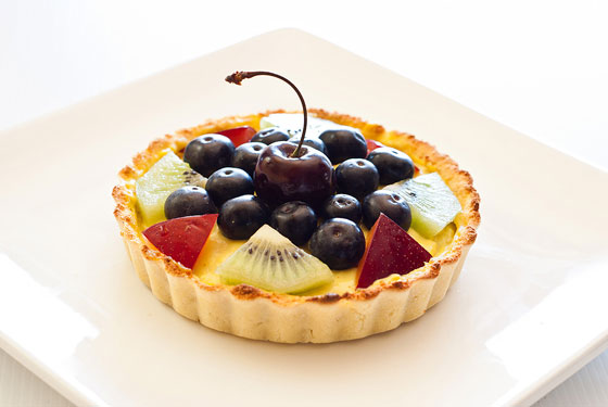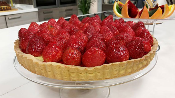 7. بعد خروج التارت من الفرن يترك ليبرد ويكون جاهزا لوضع حشوة (مربى أو فاكهة بالكريمة أو فواكه مسكرة حسب الذوق) وبالهنا والشفا.