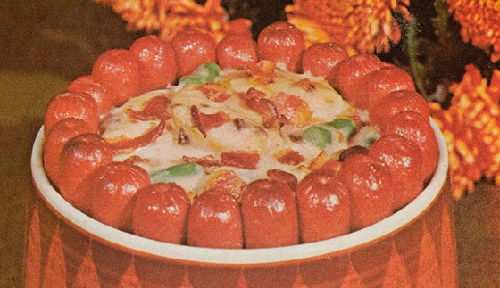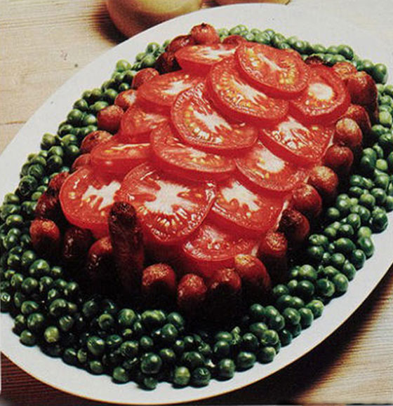 وتعددّت مصادر الإلهام حينها بين كُتب الطهي والبطاقات التي تتضمن وصفات شهية، عندما كان فن التصوير لايزال يافعاً وفي أعوامه الأولى. وأعادت البريطانية أنا بالاي الحياة إلى ذاك العصر القديم للمطبخ، عن طريق حساباتها على موقعي "تويتر" و"تمبلر" وكتابها الجديد الذي يدعى "70sDinner Party: The Good, the Bad, and the Downright Ugly of Retro Food". وتشاهدون بعض أغرب هذه الأطباق من وجبة عشاء نموذجية التي ستجعلكم تضحكون تارة وتشعرون بالحزن تارة أخرى: