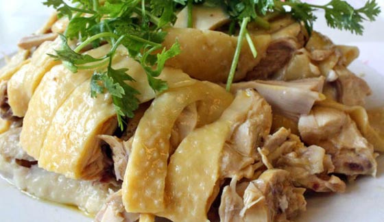 2- الدجاج الأبيض المقطع، والذي يسلق بعظامه إلى أن يصبح طرياً، ويقدّم مع صلصة خاصة إلى الجانب.