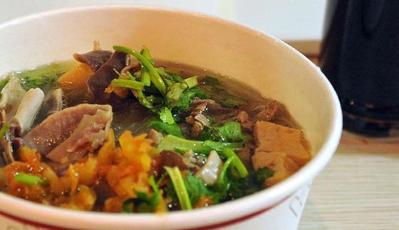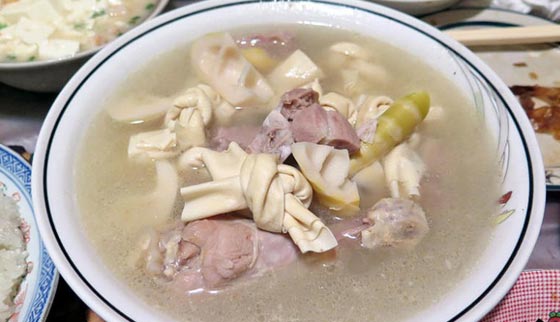 5- شوربة "يان دو زيان،" والتي تضم مكوناتنها براعم نبات البامبو وأحشاء الخنزير وشرائح التوفو ونيذ الأرز الأصفر، والتي تُطهى في إناء فخاري بهدوء لساعات.