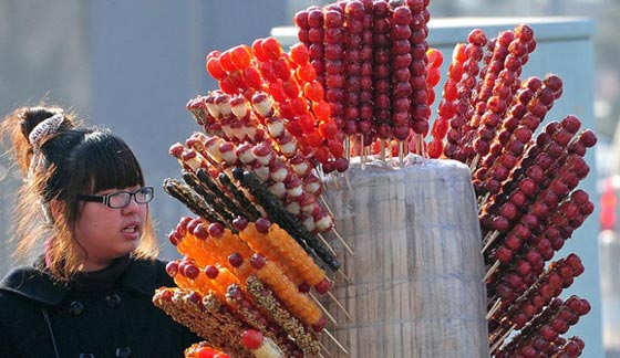 6- نبات الزعرور المغطى بالسكاكر، الذي يتميز بطعمه الحامض واللذيذ.