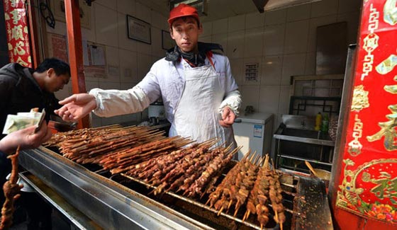 4- أسياخ الكباب التقليدية. وتتضمن الخيارات كباب اللحم بالكمون، والحبار، وأجنحة الدجاج الحريفة، والمحار المشوي.
