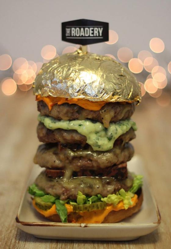 إذا أردت تذوق برغر مغطى بمسحوق الذهب فما عليك إلا التوجه إلى "مهرجان دبي للمأكولات" حيث ابتكرت حافلة "ذا رودري" البريطانية المشهورة وصفة البرغر الشهية التي تضم أفخر المكونات الطازجة وأطلقت عليها اسم "برغ خليفة". إذاً فقد دخل الذهب إلى عالم البرغر، كما يمكنك تناولها أمام برج خليفة، فهذا بالضبط ما ابتكرته حافلة المأكولات اللندنية "ذا رودري".