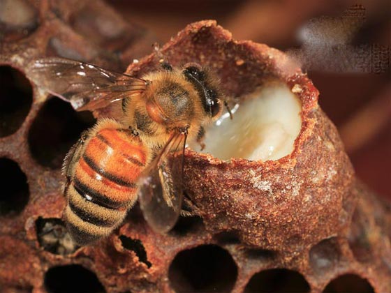 وهو سائل كثيف أبيض اللون يشبه القشدة تفرزه عاملات النحل لإطعام اليرقات والملكة. وترجع أهمية الغذاء الملكي إلى كون الملكة تتغذى عليه طيلة حياتها ما يجعلها تعمّر طويلاً. ويضم الغذاء الملكي مجموعة من العناصر الغذائية الممتازة التي تقدم للجسم فوائد جمة، فهو يفتح الشهية، ويجدد نشاط الجسم، ويعمل على معاكسة آلية الشيخوخة في الخلايا وبالتالي تأخير مظاهر التقدم في السن، ويحرّض على إفراز هرمونات الجسم المختلفة، خصوصاً الهرمونات الجنسية والأنسولين والسيروتونين، ويحافظ على نعومة الجلد ورونق الشعر، ويساعد على خفض ضغط الدم المرتفع، ويخفض مستوى الكوليسترول الضار في الدم، ويزيد من تدفق الدم إلى المخ، ويقوي الذاكرة.